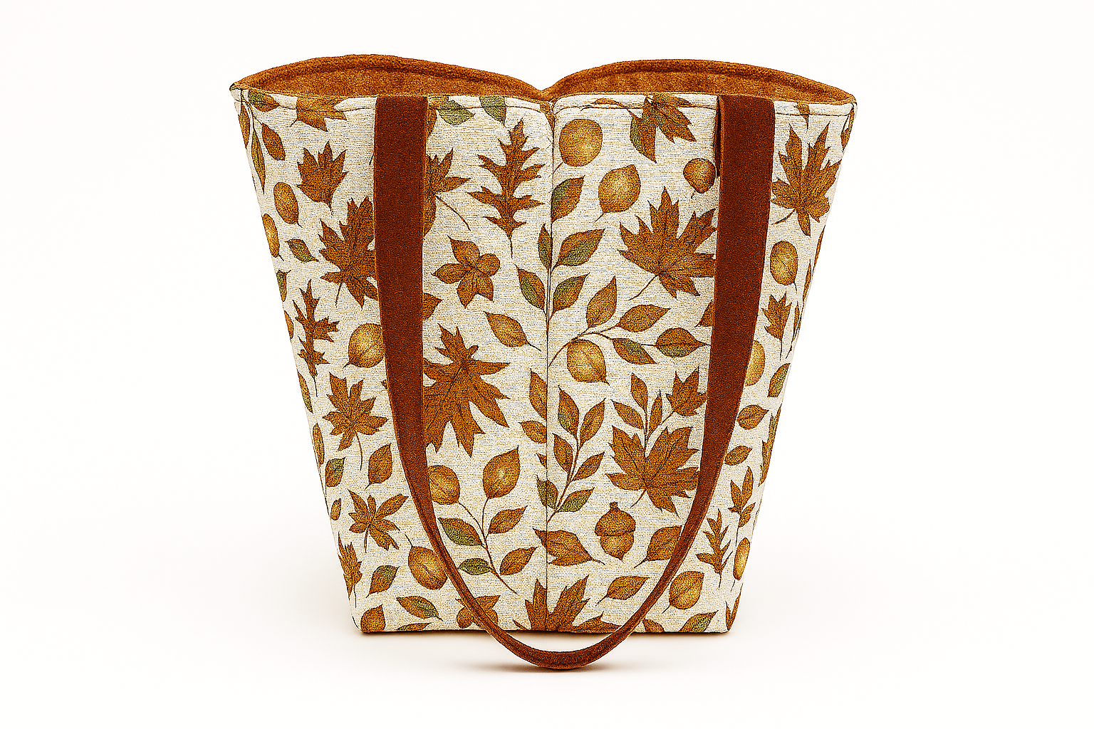 Celebrate fall’s cozy charm with the Leaf It to Me market bag. Decorated with warm leaves in orange, brown, and green, this tote adds a splash of seasonal fun to your errands. A bold orange stripe and matching handles provide a cheerful pop of color and sturdy support. Spacious (14.5 x 18. 5 x 5) and lightweight, it’s perfect for market finds, library trips, or weekend adventures. Easy to wash and ready for anything, this festive tote is your playful, all-season companion.